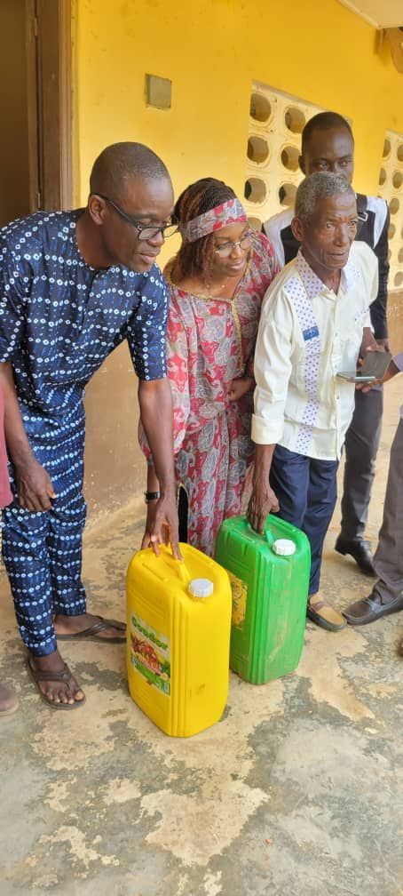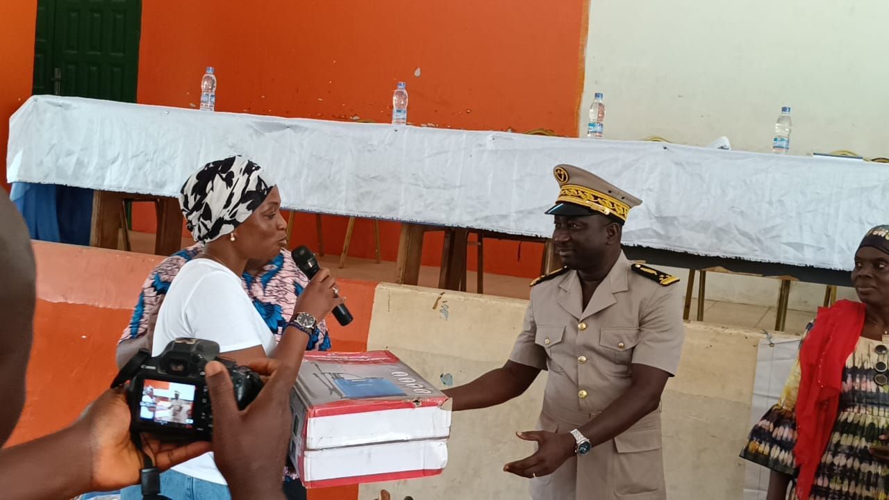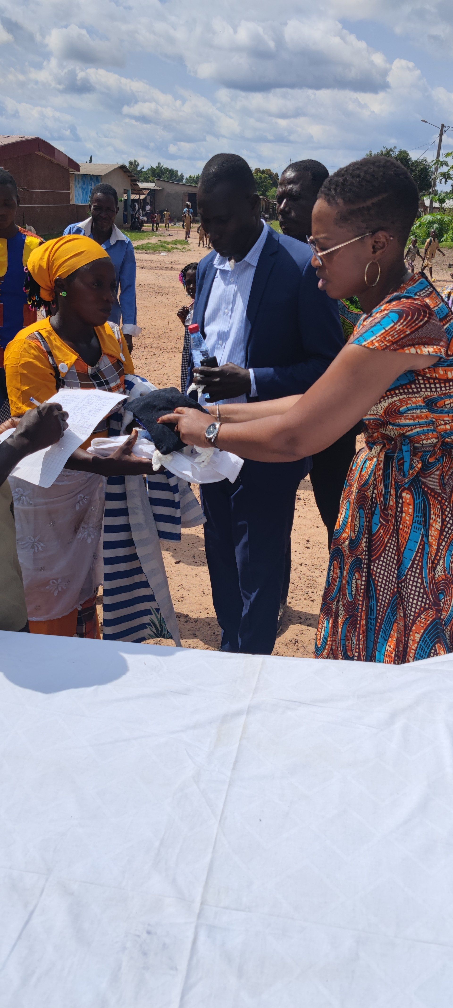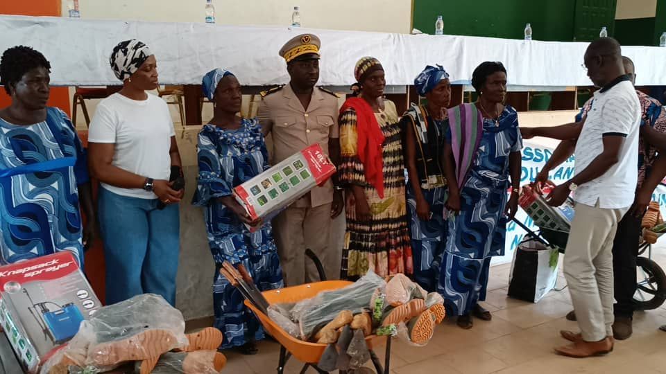 Remise du matériel février 2024 agricole en présence de: du Secrétaire général de la préfecture( représentant du préfet), le directeur et le secrétaire général de la DRENA Issa, La 6ème adjoint au Maire, le directeur du centre social , les chefs du village et bien évidents des femmes qui vont débuter ce magnifique projet.